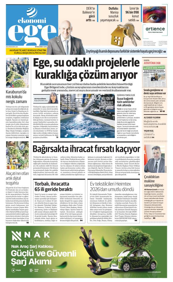 https://www.ekonomim.com/yazar/hakan-atis/1465 NBE Ege - Ocak 2026 Yazısıİndir (02.02.2026) Hakan Atis Dünya haritasında ülkelerin kendilerine has egemenlik sınırları içinde var olabilmelerini sağlayan bazı unsurlar vardır. Bunlardan ilki güçlü ve caydırıcı ordu; ikincisi ise üretken, rekabetçi, yenilikçi ve sağlam bir ekonomidir. Türkiye’nin incisi Ege Bölgesi’ne ikinci pencereden baktığımızda, bir başka deyişle konuyu makroekonomik açıdan analiz ettiğimizde tablo... Okumaya Devam et →