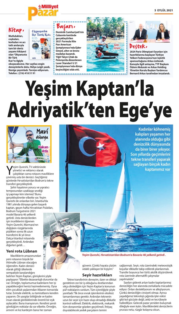 Yeşim Qureshi, TV sektöründe yönetici ve reklamcı olarak çalıştıktan sonra rotasını maviliklere çevirmiş usta bir denizci. Geçtiğimiz günlerde Hırvatistan’dan Bodrum’a tekne transferi gerçekleştirdi.