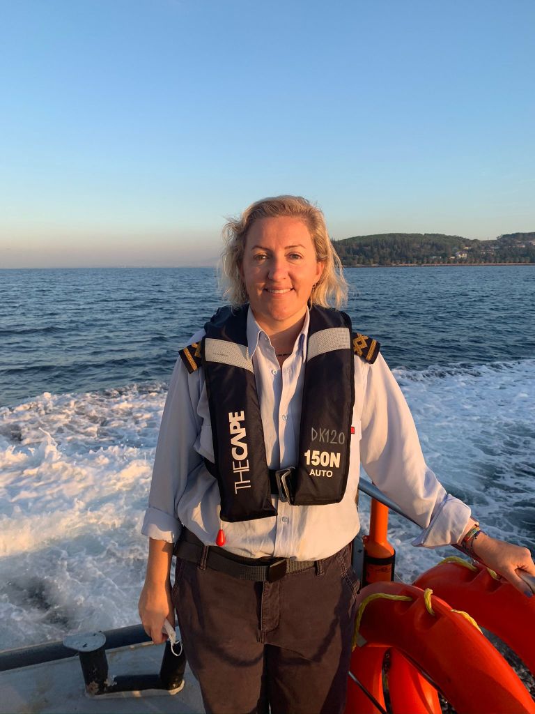 Nildeniz Sütçü Şen, geleceğin genç kadın denizcileri için iyi bir örnek. Peki, kılavuz kaptanlığın püf noktaları nedir? Deneyimli isim bu sorumu kısaca şöyle yanıtlıyor: “Başlangıç noktası, gemiye emniyetle ve zamanında katılmak. Bu süreç, genellikle yol üstünde (hareket halinde) başlıyor. Çıkılan geminin kaptanıyla doğrudan iletişim ve gereken tüm bilgiye eksiksiz sahip olmak gerekiyor. Beş gün vardiya sonrası evde on gün dinlenme şeklinde çalışma takvimimiz var.