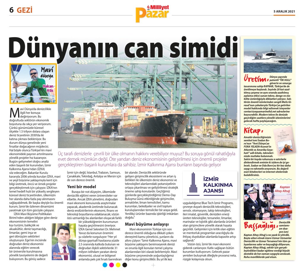 Gelişimleri için kritik olan eğitim ve mentorluk programları aracılığıyla da ihtiyaç duydukları alanlarda kapasite artışı sağlandı.’’ Sözün özü, İzmir’de mavi ekonomi giderek canlanıyor. Katkı sağlayan bütün kurumları kutluyorum. Gelecek Pazar yeniden buluşmak dileğiyle pruvanız neta, rüzgar kolayınıza olsun.