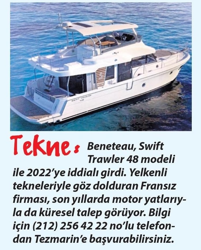 Beneteau, Swift Trawler 48 modeli ile 2022’ye iddialı girdi. Yelkenli tekneleriyle göz dolduran Fransız firması son yıllarda motor yatlarıyla da küresel talep görüyor. Bilgi için 212. 256 42 22 no’lu telefondan Tezmarin’e başvurabilirsiniz.