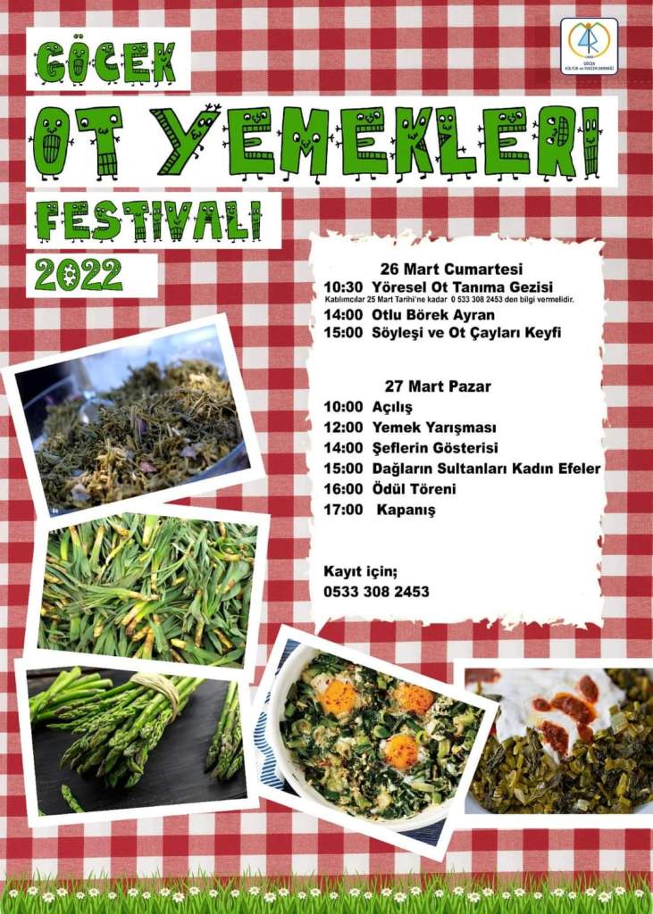 Göcek Ot Yemekleri Festivali, 26 Mart 2022 Cumartesi günü gerçekleştirilecek. Katılımcıların bir gün öncesine kadar 533. 308 24 53 no’lu telefona bilgi vermesi rica ediliyor. Bu lezzet şöleni saat 10.30’da yöresel ot tanıtma gezisi ile başlayacak. İlerleyen saatlerde şeflerin gösterisiyle renklenecek. Kaçırmayın. Şimdiden afiyet olsun.