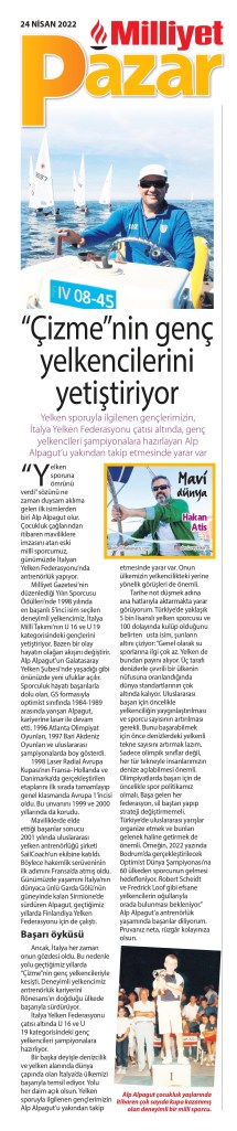 Yelken sporuyla ilgilenen gençlerimizin, İtalya Yelken Federasyonu çatısı altında, genç yelkencileri şampiyonalara hazırlayan Alp Alpagut’u yakından takip etmesinde yarar var.