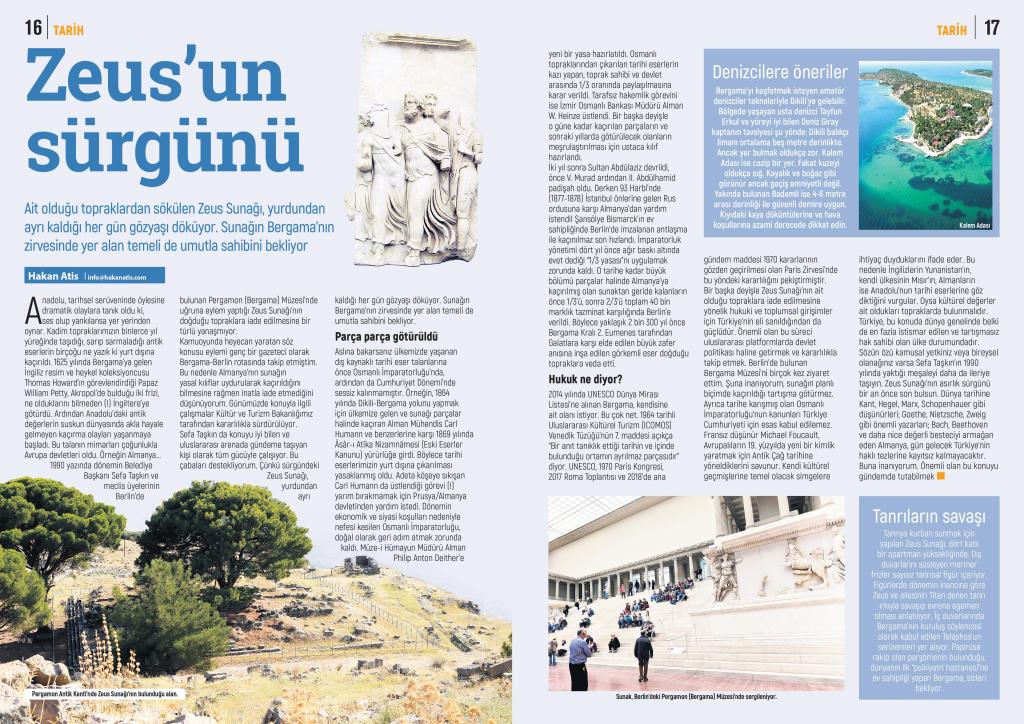 Anadolu, tarihsel serüveninde öylesine dramatik olaylara tanık oldu ki, ses olup yankılansa yer yerinden oynar. Kadim topraklarımızın binlerce yıl yüreğinde taşıdığı, sarıp sarmaladığı antik eserlerin birçoğu ne yazık ki yurt dışına kaçırıldı. 1625 yılında Bergama’ya gelen İngiliz resim ve heykel koleksiyoncusu Thomas Howard’ın görevlendirdiği Papaz William Petty, Akropol’de bulduğu iki frizi, ne olduklarını bilmeden (!) İngiltere’ye götürdü. Ardından Anadolu’daki antik değerlerin suskun dünyasında akla hayale gelmeyen kaçırma olayları yaşanmaya başladı. Bu talanın mimarları çoğunlukla Avrupa devletleri oldu. Örneğin Almanya… 1990 yazında dönemin Belediye Başkanı Sefa Taşkın ve meclis üyelerinin Berlin’de bulunan Pergamon (Bergama) Müzesi’nde uğruna eylem yaptığı Zeus Sunağı’nın doğduğu topraklara iade edilmesine bir türlü yanaşmıyor. Kamuoyunda heyecan yaratan söz konusu eylemi genç bir gazeteci olarak Bergama-Berlin rotasında takip etmiştim. Bu nedenle Almanya’nın sunağın yasal kılıflar uydurularak kaçırıldığını bilmesine rağmen inatla iade etmediğini düşünüyorum. Günümüzde konuyla ilgili çalışmalar Kültür ve Turizm Bakanlığımız tarafından kararlılıkla sürdürülüyor. Sefa Taşkın da konuyu iyi bilen ve uluslararası arenada gündeme taşıyan kişi olarak tüm gücüyle çalışıyor. Bu çabaları destekliyorum. Çünkü sürgündeki Zeus Sunağı, yurdundan ayrı kaldığı her gün gözyaşı döküyor. Sunağın Bergama’nın zirvesinde yer alan temeli de umutla sahibini bekliyor.