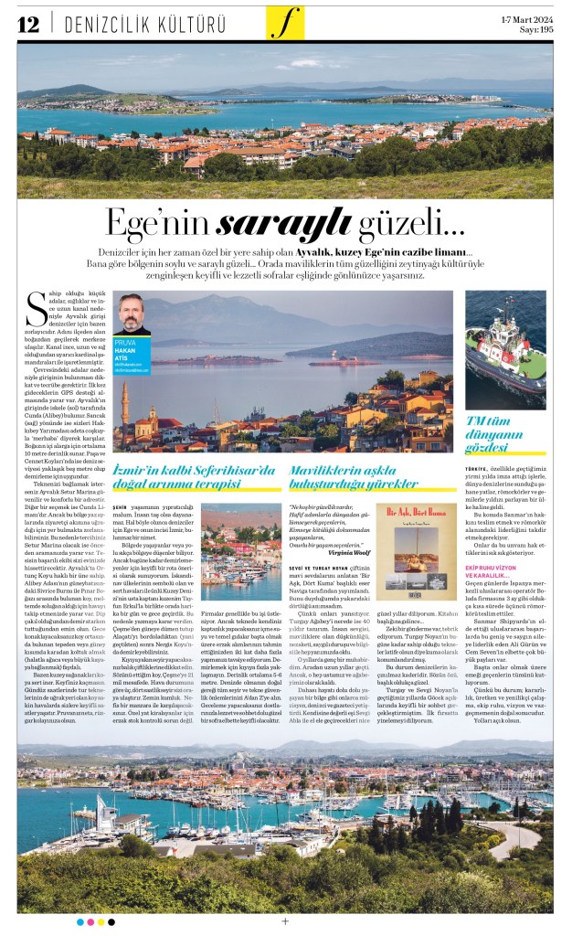 Denizciler için her zaman özel bir yere sahip olan Ayvalık, kuzeyin cazibe limanıdır. Orada maviliklerin tüm güzelliğini zeytinyağı kültürüyle zenginleşen keyifli ve lezzetli sofralar eşliğinde gönlünüzce yaşarsınız.