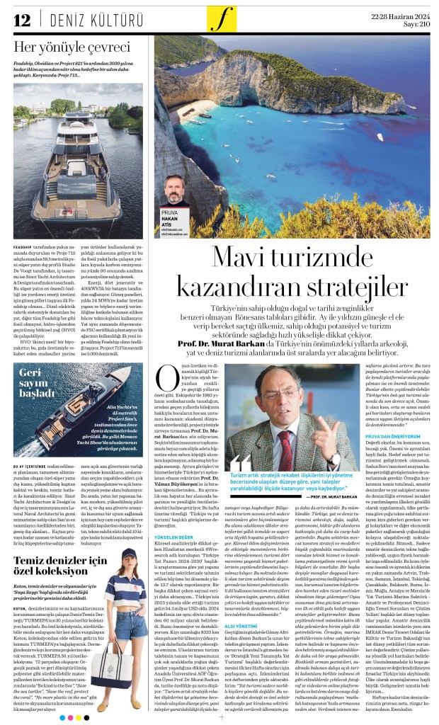 Bilim dünyamızın kanaat önderlerinden Prof.Dr.Murat Barkan, Türkiye’nin önümüzdeki yıllarda arkeoloji, yat ve deniz turizmi alanlarında lider ülkeler arasında üst sıralarda yer alacağını belirtiyor.