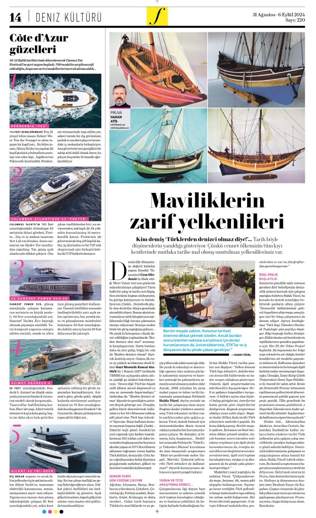 Ardından da ‘Bizden denizci olmaz diyenlerin yanıldığını gösteren birçok gösterge var. Örneğin, yelken kürek dönemlerinde kullanılan ve her biri Rönesans tablosu gibi güzel olan Türk kıyı tekneleri’’ diyorum. Bunu haftanın konusu seçmem boşuna değil. Çünkü… Zümrüt taçlı güzel Anadolu’yu yurt yapmak için kadim topraklarımıza 953 yıldan çok daha öncesinden başlayıp asırlar boyunca akınlar yapan ve 1071’den itibaren silinmez tuğrasını vuran kadim Türk kültürü denizcidir. Orta Asya coğrafyasından farklı diyarlara geçişlerinde nehirleri, gölleri ve denizleri ustalıkla kullanmıştır. Bu konuda geniş araştırmalar yapılması ve kamuoyu ile paylaşılması elzemdir.