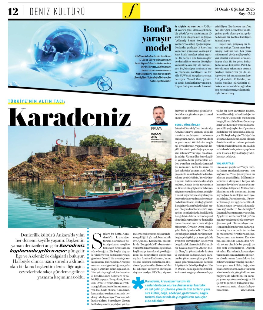Değerli okurlar, Karadeniz kruvaziyer turizmi ile canlandırılacak olursa, uluslararası fuarcılık ve üst gelir gruplarına yönelik özel turların yanı sıra kültür, doğa, edebiyat, gastronomi ve sağlık turizmi alanlarında da yüz güldüren sonuçlar elde edilebilir.