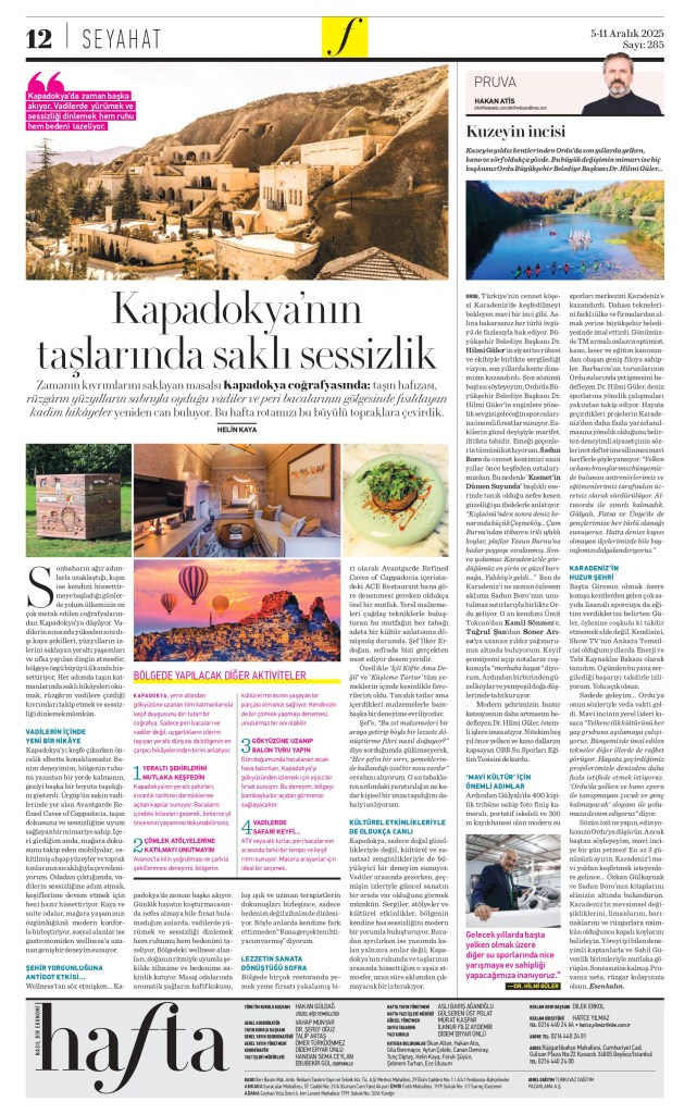 Sözün özü; ne yapın, edin yolunuzu Ordu’ya düşürün. Orada yaşanan değişimi kendi gözlerinizle görün. Ancak baştan söyleyeyim, mavi inciye bir gün yetmez. Doğasıyla, mutfağıyla, tarihi ve engin kültürüyle gönlünüzce keşfetmek istiyorsanız en az üç gün ayırın. Mutlu ve daha dinç döneceğinizi garanti ediyorum.